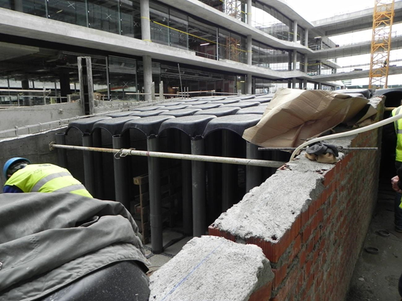 La que requirió un mayor esfuerzo técnico fue el diseño de un elemento constructivo que permitiera construir recrecidos de altura variable de hasta 1,80 m de altura y que pudieran soportar la sobrecarga de un camión de bomberos.
